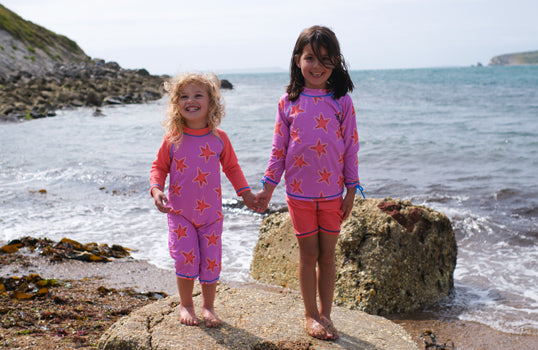 Our UPF 50+ swimwear is made using recycled fabric from plastic bottles. This is the highest UPF rating and offers excellent protection from UVA and UVB radiation.